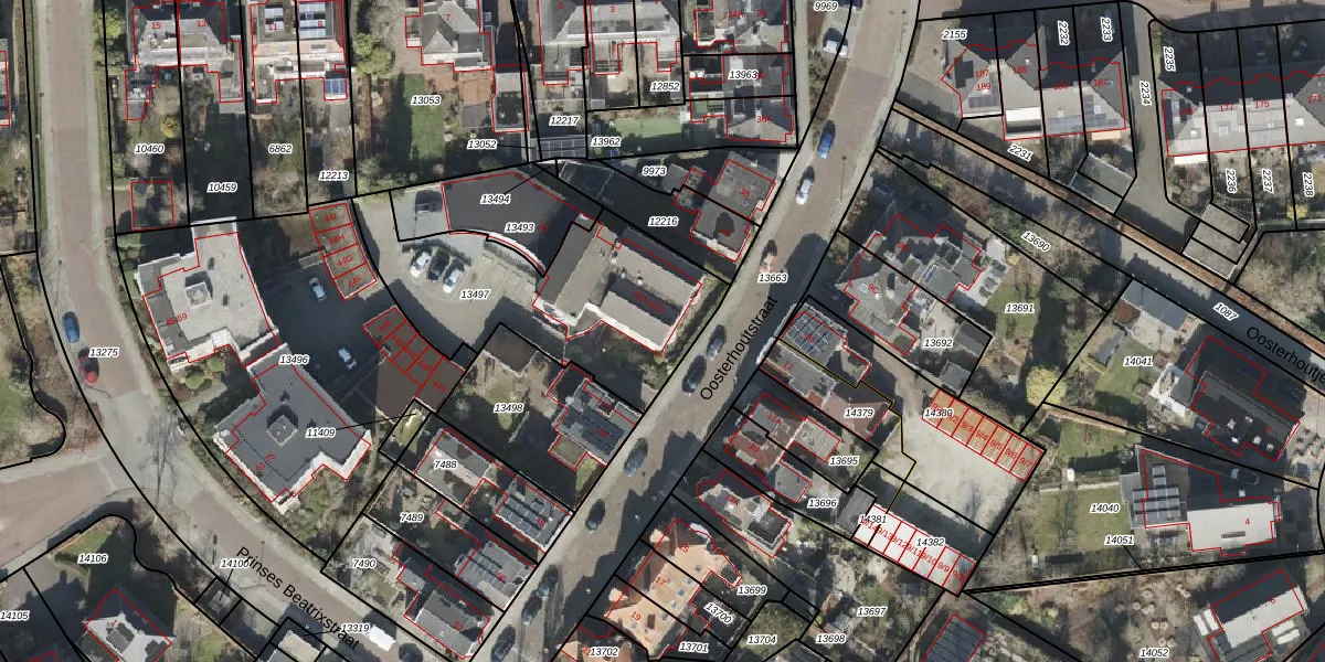 Het perceel waarop Oosterhoutstraat 42-B staat heeft een oppervlakte van 935 m². Dit is een groot perceel. De perceeloppervlakte wordt geregistreerd door het Kadaster. Gedetailleerde informatie over de maten van dit perceel kunt u vinden in het rapport Kadastrale kaart met maatvoering van Oosterhoutstraat 42-B.
