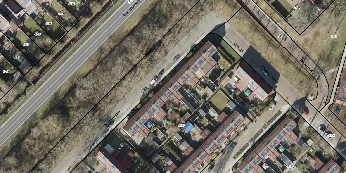 Het perceel waarop Oostermoer 17 staat heeft een oppervlakte van 5668 m². Dit is een zeer groot perceel. De perceeloppervlakte wordt geregistreerd door het Kadaster. Gedetailleerde informatie over de maten van dit perceel kunt u vinden in het rapport Kadastrale kaart met maatvoering van Oostermoer 17.