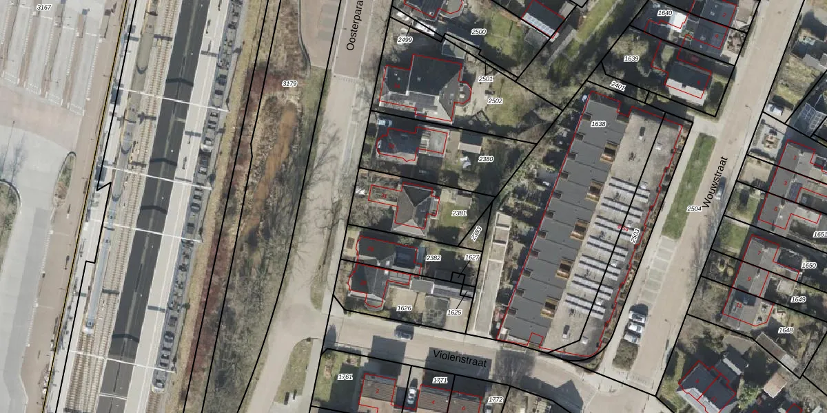 Gebruik de zoekbalk of klik op een perceel voor informatie over de adressen binnen dit perceel.