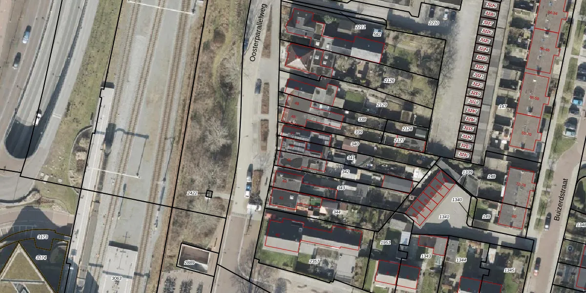 Het perceel waarop Oosterparallelweg 46 staat heeft een oppervlakte van 256 m². Dit is een middelgroot perceel. De perceeloppervlakte wordt geregistreerd door het Kadaster. Gedetailleerde informatie over de maten van dit perceel kunt u vinden in het rapport Kadastrale kaart met maatvoering van Oosterparallelweg 46.