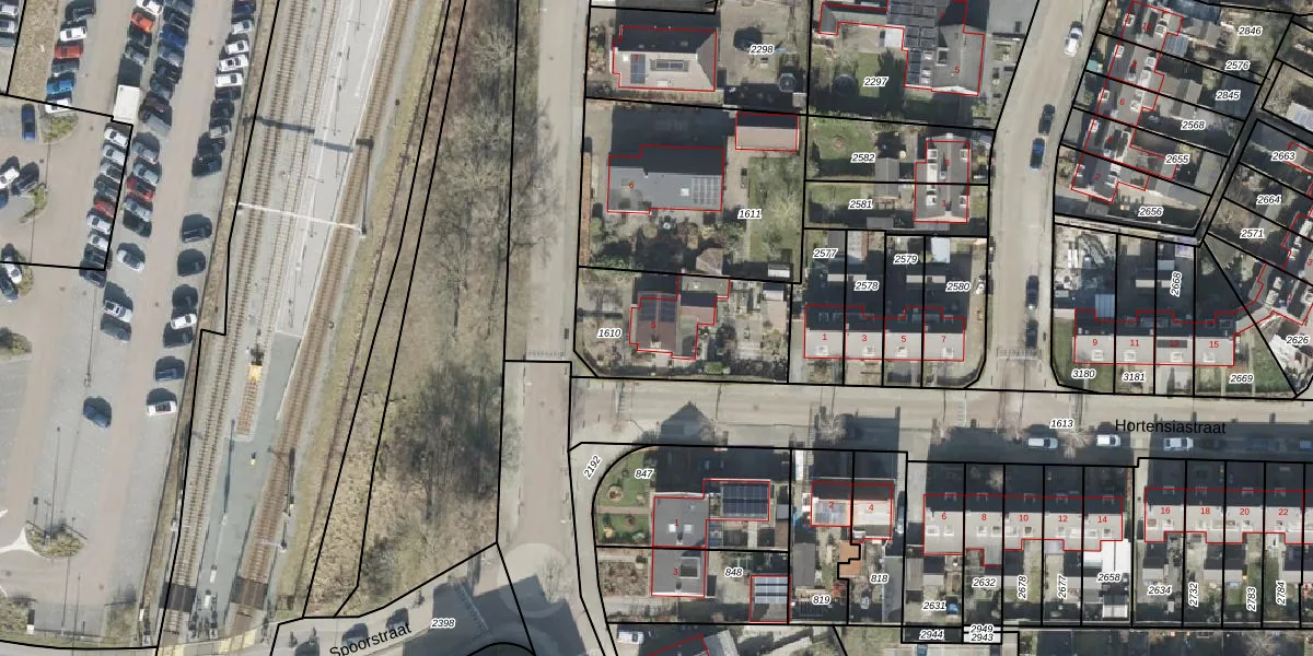 Gebruik de zoekbalk of klik op een perceel voor informatie over de adressen binnen dit perceel.