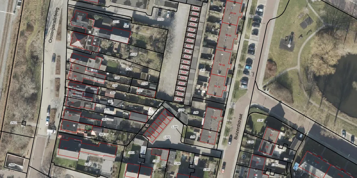 Het perceel waarop Oosterparallelweg 51-P staat heeft een oppervlakte van 18 m². Dit is een klein perceel. De perceeloppervlakte wordt geregistreerd door het Kadaster. Gedetailleerde informatie over de maten van dit perceel kunt u vinden in het rapport Kadastrale kaart met maatvoering van Oosterparallelweg 51-P.