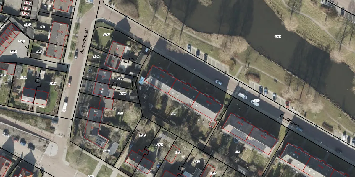 Oosterpark 16 is gelegen op kadastraal perceel ASN00V137. Deze kadastrale aanduiding is uniek en wordt gebruikt door het Kadaster om eigendomsrechten en andere zakelijke rechten vast te leggen. Het perceel maakt onderdeel uit van de kadastrale gemeente Assen.