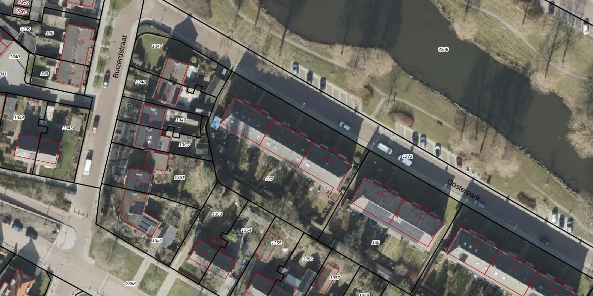 Het perceel waarop Oosterpark 22 staat heeft een oppervlakte van 1750 m². Dit is een zeer groot perceel. De perceeloppervlakte wordt geregistreerd door het Kadaster. Gedetailleerde informatie over de maten van dit perceel kunt u vinden in het rapport Kadastrale kaart met maatvoering van Oosterpark 22.