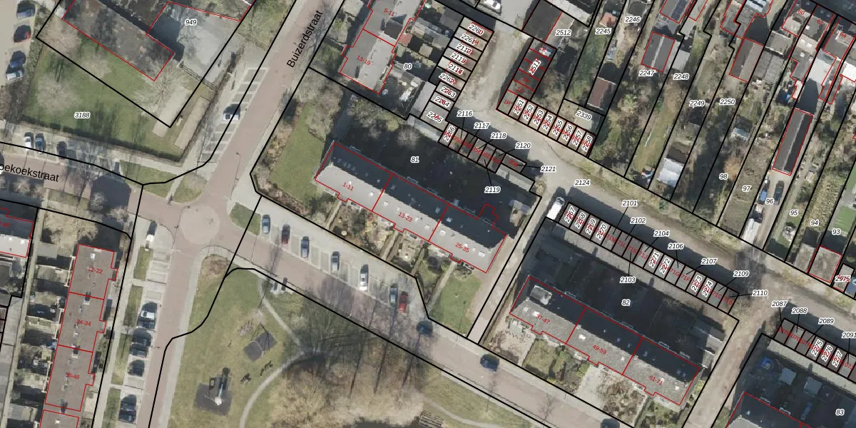 Het perceel waarop Oosterpark 23 staat heeft een oppervlakte van 2060 m². Dit is een zeer groot perceel. De perceeloppervlakte wordt geregistreerd door het Kadaster. Gedetailleerde informatie over de maten van dit perceel kunt u vinden in het rapport Kadastrale kaart met maatvoering van Oosterpark 23.