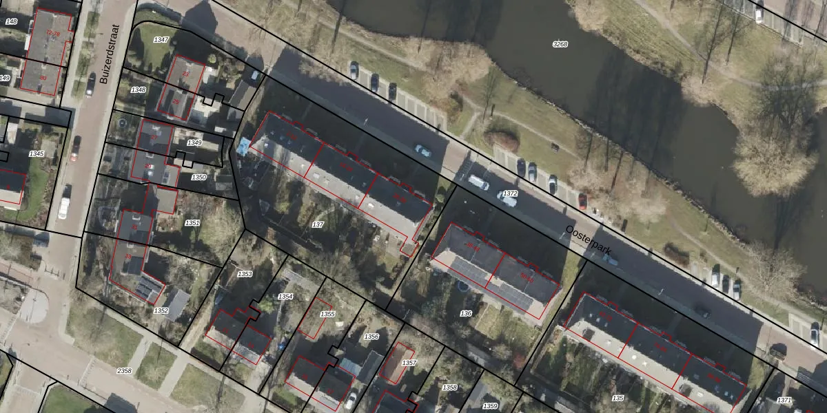 Het perceel waarop Oosterpark 32 staat heeft een oppervlakte van 1750 m². Dit is een zeer groot perceel. De perceeloppervlakte wordt geregistreerd door het Kadaster. Gedetailleerde informatie over de maten van dit perceel kunt u vinden in het rapport Kadastrale kaart met maatvoering van Oosterpark 32.