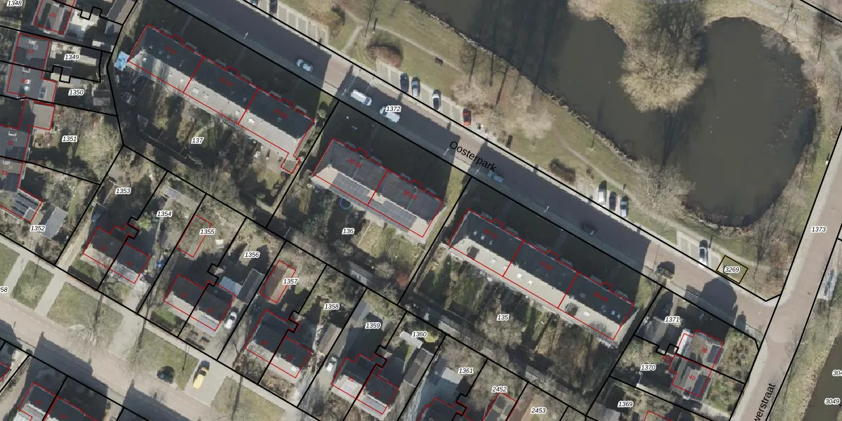 Het perceel waarop Oosterpark 58 staat heeft een oppervlakte van 1280 m². Dit is een zeer groot perceel. De perceeloppervlakte wordt geregistreerd door het Kadaster. Gedetailleerde informatie over de maten van dit perceel kunt u vinden in het rapport Kadastrale kaart met maatvoering van Oosterpark 58.