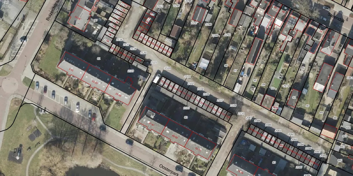 Het perceel waarop Oosterpark 71-N staat heeft een oppervlakte van 15 m². Dit is een klein perceel. De perceeloppervlakte wordt geregistreerd door het Kadaster. Gedetailleerde informatie over de maten van dit perceel kunt u vinden in het rapport Kadastrale kaart met maatvoering van Oosterpark 71-N.