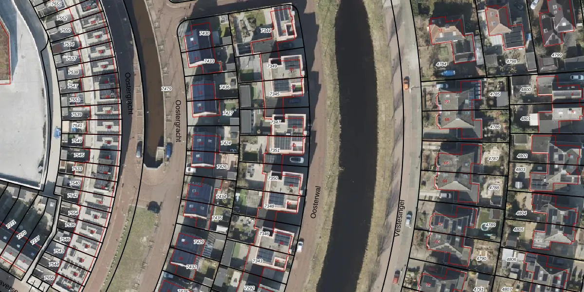 Gebruik de zoekbalk of klik op een perceel voor informatie over de adressen binnen dit perceel.
