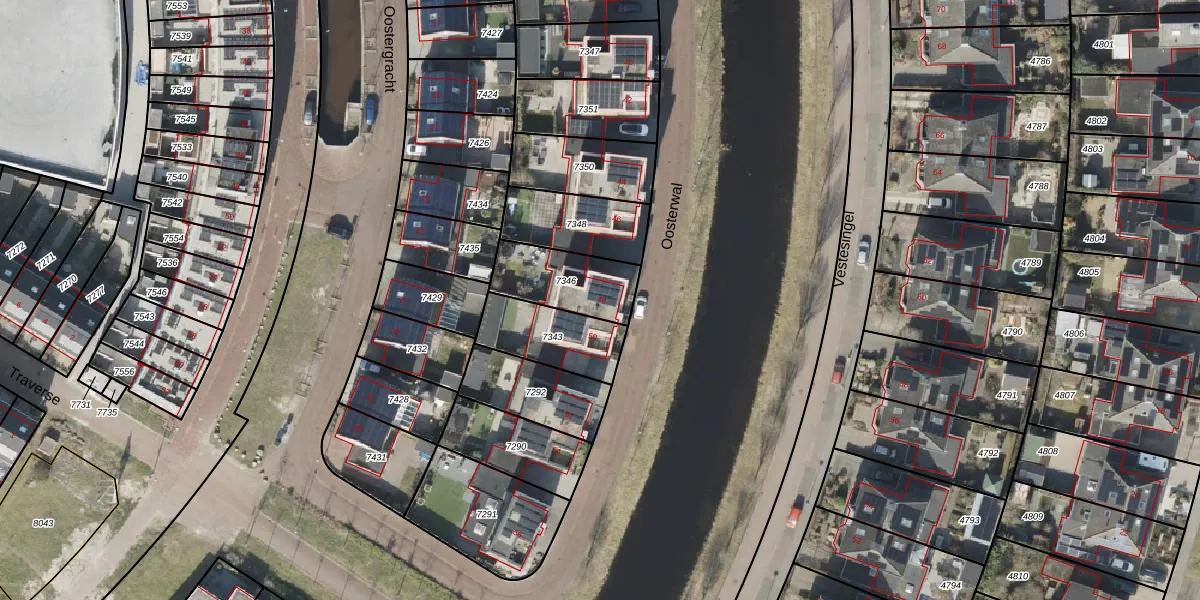Gebruik de zoekbalk of klik op een perceel voor informatie over de adressen binnen dit perceel.