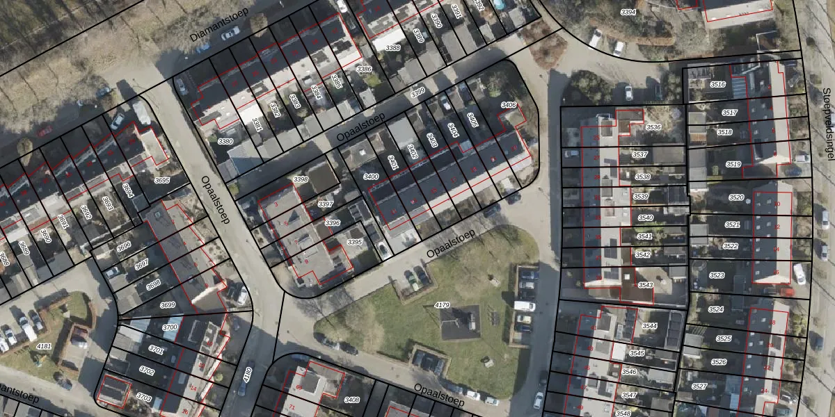 Gebruik de zoekbalk of klik op een perceel voor informatie over de adressen binnen dit perceel.