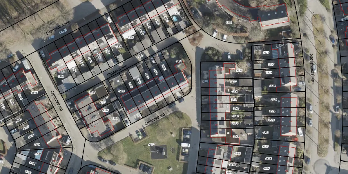 Gebruik de zoekbalk of klik op een perceel voor informatie over de adressen binnen dit perceel.