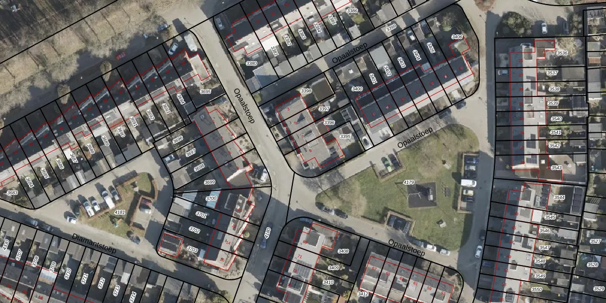 Gebruik de zoekbalk of klik op een perceel voor informatie over de adressen binnen dit perceel.