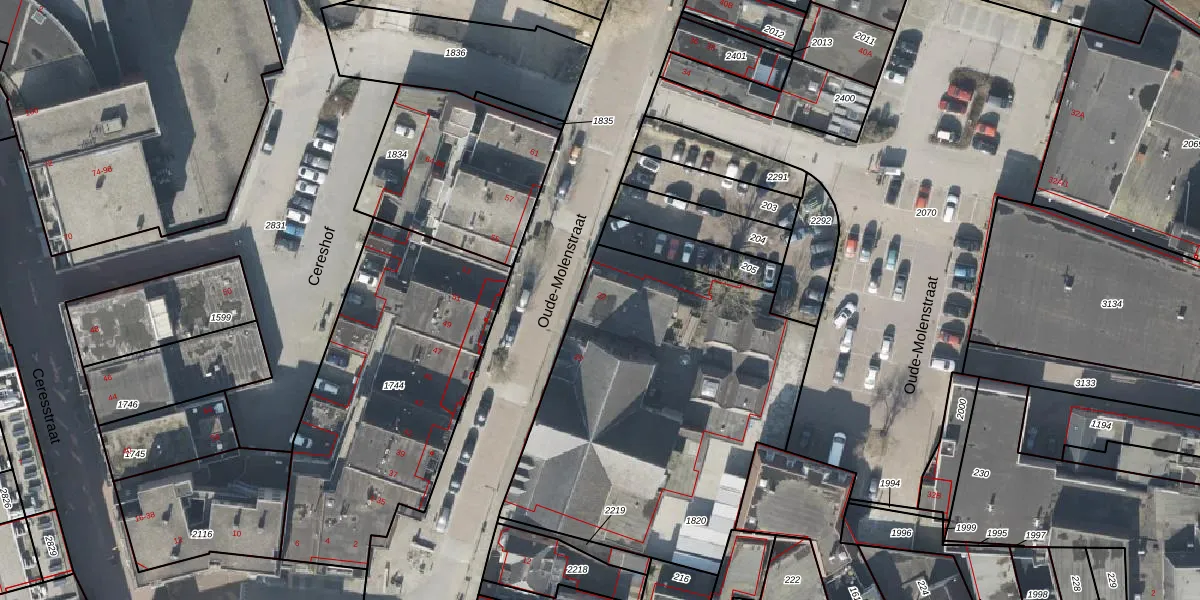 Het perceel waarop Oude-Molenstraat 22 staat heeft een oppervlakte van 1819 m². Dit is een zeer groot perceel. De perceeloppervlakte wordt geregistreerd door het Kadaster. Gedetailleerde informatie over de maten van dit perceel kunt u vinden in het rapport Kadastrale kaart met maatvoering van Oude-Molenstraat 22.