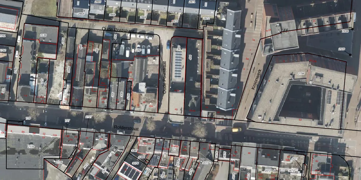 Het perceel waarop Oude Poststraat 40 staat heeft een oppervlakte van 380 m². Dit is een groot perceel. De perceeloppervlakte wordt geregistreerd door het Kadaster. Gedetailleerde informatie over de maten van dit perceel kunt u vinden in het rapport Kadastrale kaart met maatvoering van Oude Poststraat 40.