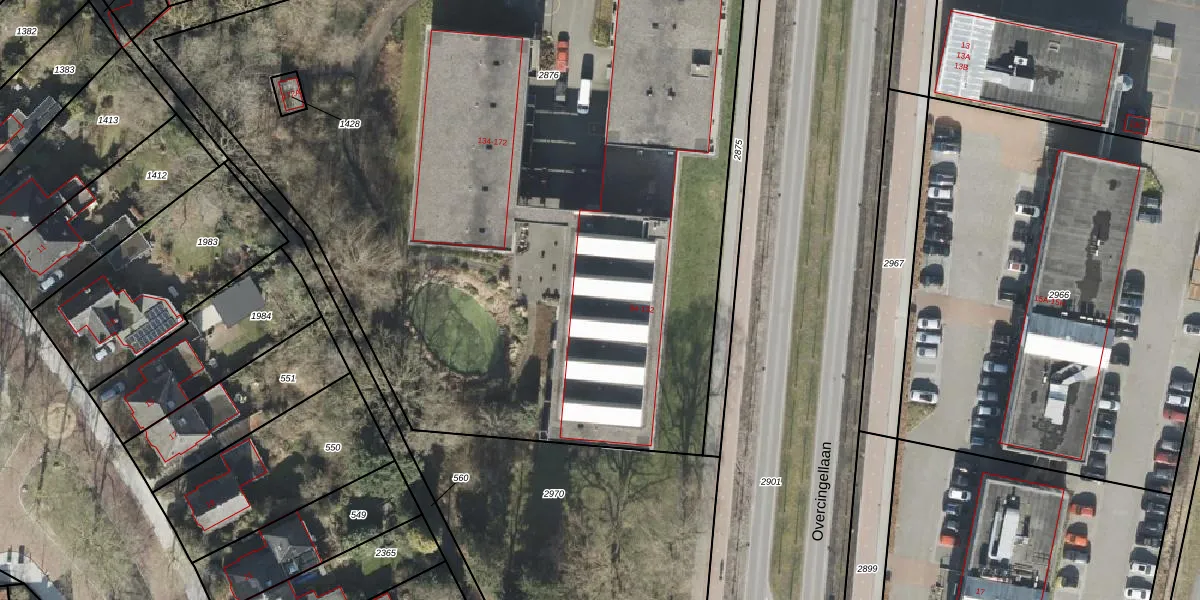 Het perceel waarop Overcingellaan 106 staat heeft een oppervlakte van 7682 m². Dit is een zeer groot perceel. De perceeloppervlakte wordt geregistreerd door het Kadaster. Gedetailleerde informatie over de maten van dit perceel kunt u vinden in het rapport Kadastrale kaart met maatvoering van Overcingellaan 106.
