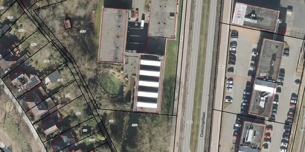 Het perceel waarop Overcingellaan 126 staat heeft een oppervlakte van 7682 m². Dit is een zeer groot perceel. De perceeloppervlakte wordt geregistreerd door het Kadaster. Gedetailleerde informatie over de maten van dit perceel kunt u vinden in het rapport Kadastrale kaart met maatvoering van Overcingellaan 126.