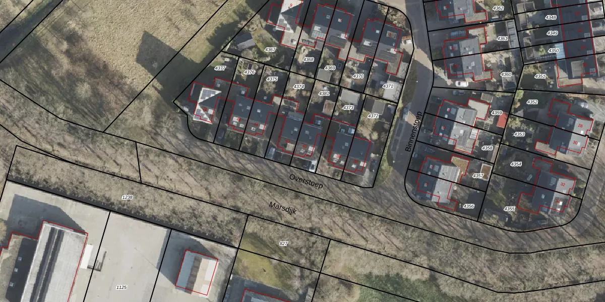 Gebruik de zoekbalk of klik op een perceel voor informatie over de adressen binnen dit perceel.