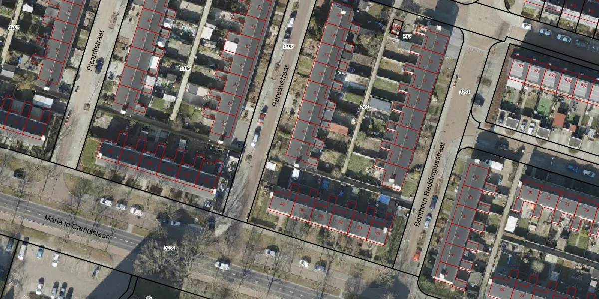 Het perceel waarop Pareaustraat 2 staat heeft een oppervlakte van 4209 m². Dit is een zeer groot perceel. De perceeloppervlakte wordt geregistreerd door het Kadaster. Gedetailleerde informatie over de maten van dit perceel kunt u vinden in het rapport Kadastrale kaart met maatvoering van Pareaustraat 2.