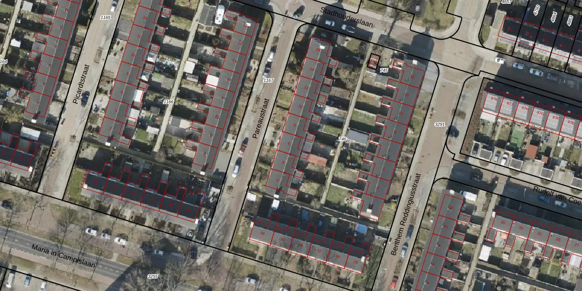 Het perceel waarop Pareaustraat 6 staat heeft een oppervlakte van 4209 m². Dit is een zeer groot perceel. De perceeloppervlakte wordt geregistreerd door het Kadaster. Gedetailleerde informatie over de maten van dit perceel kunt u vinden in het rapport Kadastrale kaart met maatvoering van Pareaustraat 6.