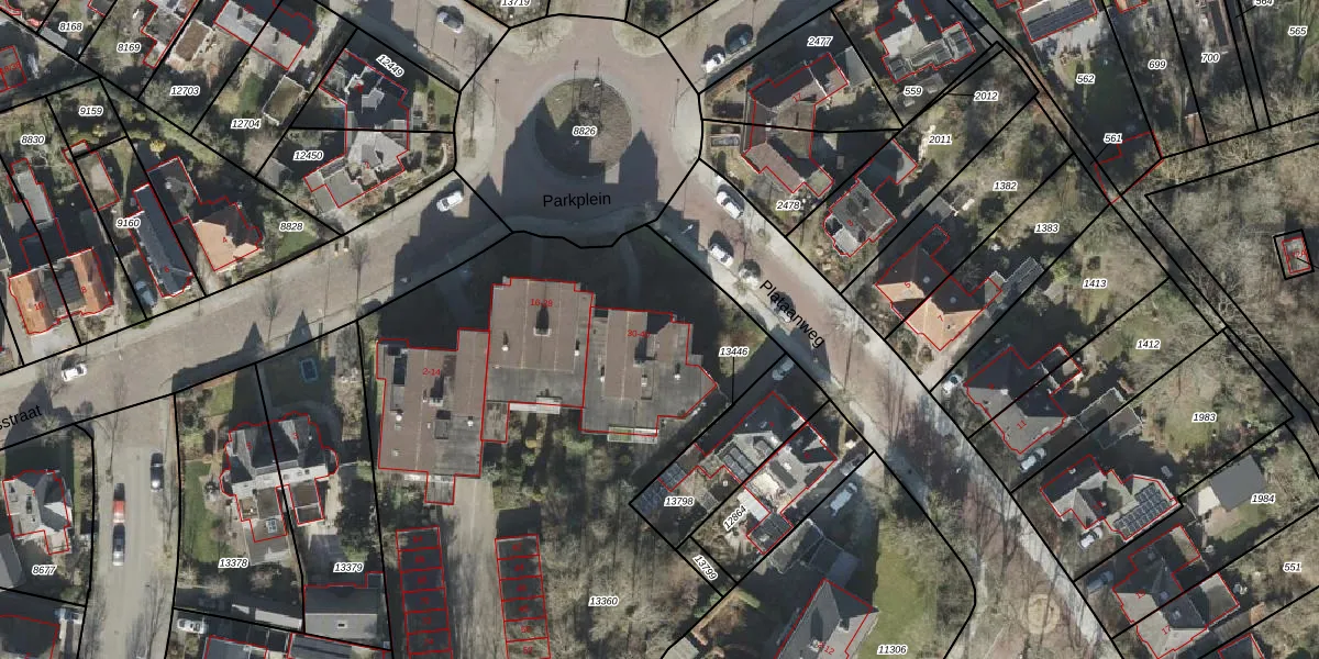 Het perceel waarop Parkplein 30 staat heeft een oppervlakte van 4100 m². Dit is een zeer groot perceel. De perceeloppervlakte wordt geregistreerd door het Kadaster. Gedetailleerde informatie over de maten van dit perceel kunt u vinden in het rapport Kadastrale kaart met maatvoering van Parkplein 30.