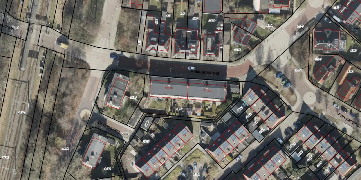 Pelikaanstraat 207 is gelegen op kadastraal perceel ASN00V1436. Deze kadastrale aanduiding is uniek en wordt gebruikt door het Kadaster om eigendomsrechten en andere zakelijke rechten vast te leggen. Het perceel maakt onderdeel uit van de kadastrale gemeente Assen.