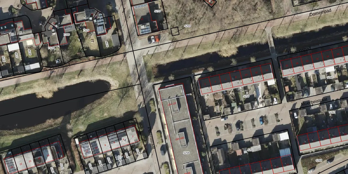 Het perceel waarop Perenstraat 12-E staat heeft een oppervlakte van 1928 m². Dit is een zeer groot perceel. De perceeloppervlakte wordt geregistreerd door het Kadaster. Gedetailleerde informatie over de maten van dit perceel kunt u vinden in het rapport Kadastrale kaart met maatvoering van Perenstraat 12-E.