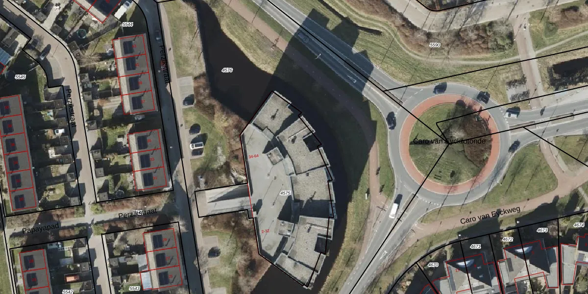 Het perceel waarop Perzikstraat 54 staat heeft een oppervlakte van 1558 m². Dit is een zeer groot perceel. De perceeloppervlakte wordt geregistreerd door het Kadaster. Gedetailleerde informatie over de maten van dit perceel kunt u vinden in het rapport Kadastrale kaart met maatvoering van Perzikstraat 54.