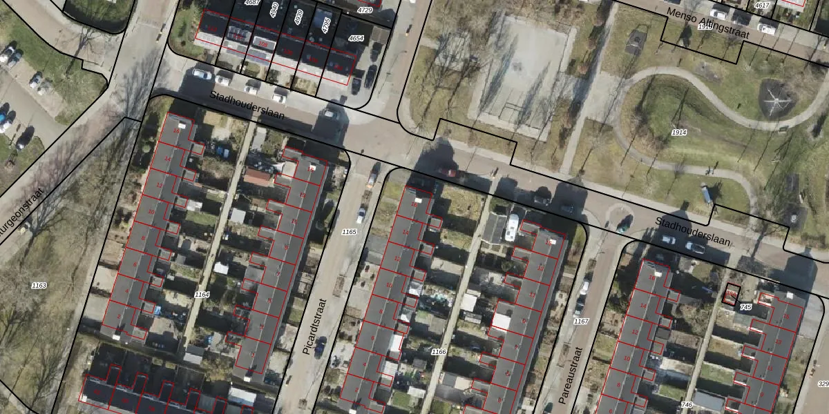 Het perceel waarop Picardtstraat 16 staat heeft een oppervlakte van 4228 m². Dit is een zeer groot perceel. De perceeloppervlakte wordt geregistreerd door het Kadaster. Gedetailleerde informatie over de maten van dit perceel kunt u vinden in het rapport Kadastrale kaart met maatvoering van Picardtstraat 16.