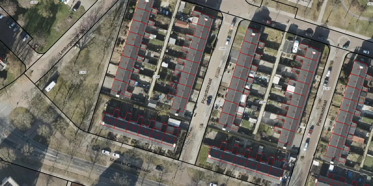 Het perceel waarop Picardtstraat 3 staat heeft een oppervlakte van 4229 m². Dit is een zeer groot perceel. De perceeloppervlakte wordt geregistreerd door het Kadaster. Gedetailleerde informatie over de maten van dit perceel kunt u vinden in het rapport Kadastrale kaart met maatvoering van Picardtstraat 3.