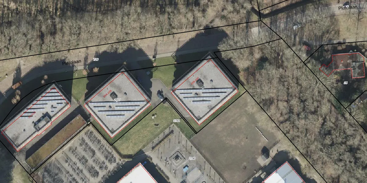 Het perceel waarop Platolaan 2-26 staat heeft een oppervlakte van 4023 m². Dit is een zeer groot perceel. De perceeloppervlakte wordt geregistreerd door het Kadaster. Gedetailleerde informatie over de maten van dit perceel kunt u vinden in het rapport Kadastrale kaart met maatvoering van Platolaan 2-26.