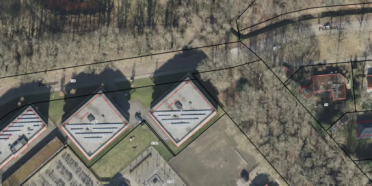 Het perceel waarop Platolaan 2-29 staat heeft een oppervlakte van 4023 m². Dit is een zeer groot perceel. De perceeloppervlakte wordt geregistreerd door het Kadaster. Gedetailleerde informatie over de maten van dit perceel kunt u vinden in het rapport Kadastrale kaart met maatvoering van Platolaan 2-29.