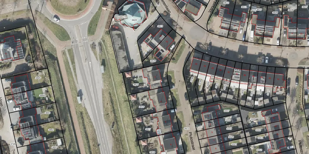 Het perceel waarop Plutostraat 2 staat heeft een oppervlakte van 427 m². Dit is een groot perceel. De perceeloppervlakte wordt geregistreerd door het Kadaster. Gedetailleerde informatie over de maten van dit perceel kunt u vinden in het rapport Kadastrale kaart met maatvoering van Plutostraat 2.