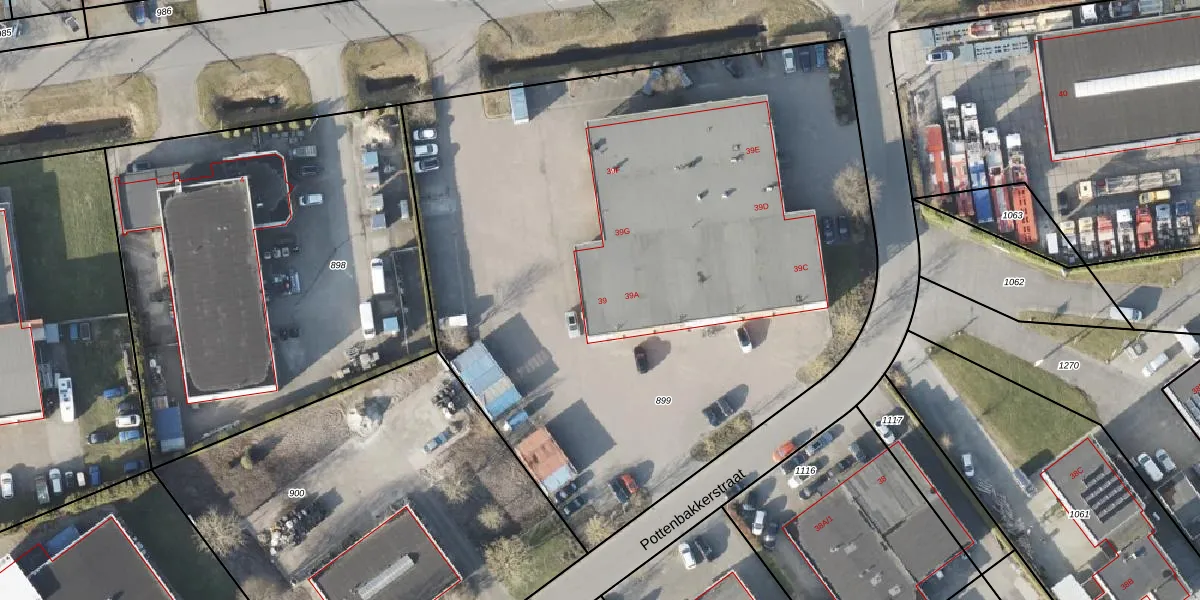 Het perceel waarop Pottenbakkerstraat 39 staat heeft een oppervlakte van 4670 m². Dit is een zeer groot perceel. De perceeloppervlakte wordt geregistreerd door het Kadaster. Gedetailleerde informatie over de maten van dit perceel kunt u vinden in het rapport Kadastrale kaart met maatvoering van Pottenbakkerstraat 39.