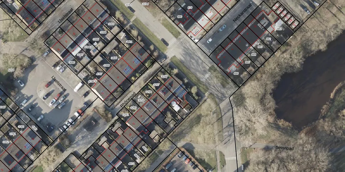 Gebruik de zoekbalk of klik op een perceel voor informatie over de adressen binnen dit perceel.