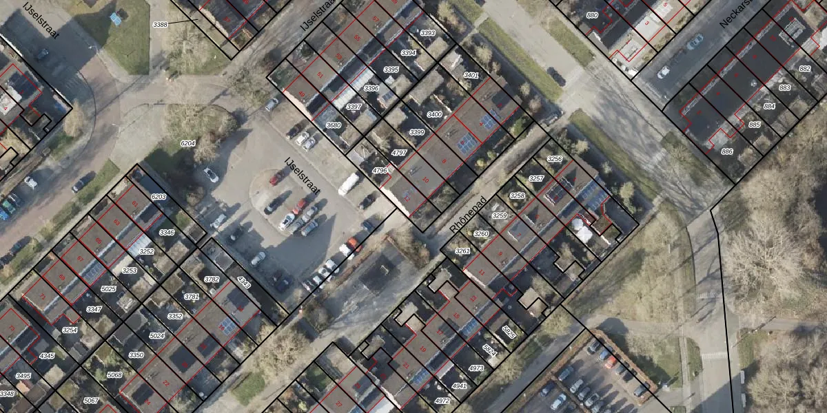 Het perceel waarop Rhônepad 12 staat heeft een oppervlakte van 174 m². Dit is een middelgroot perceel. De perceeloppervlakte wordt geregistreerd door het Kadaster. Gedetailleerde informatie over de maten van dit perceel kunt u vinden in het rapport Kadastrale kaart met maatvoering van Rhônepad 12.