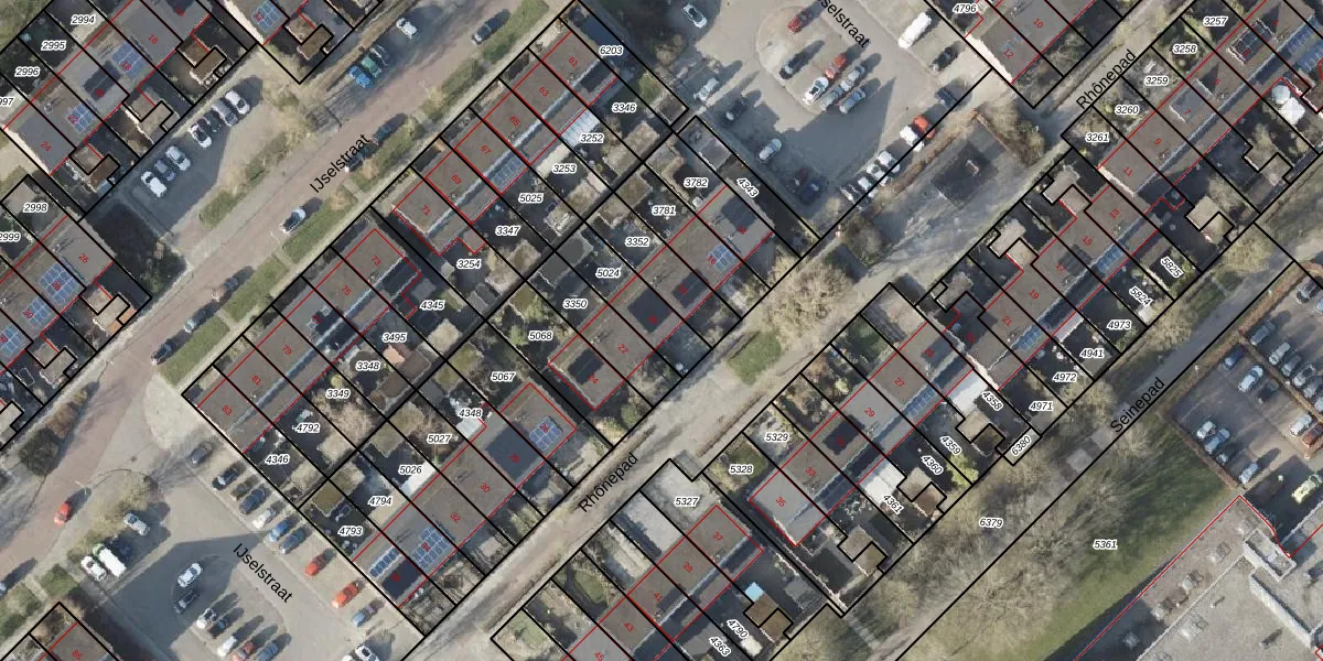 Gebruik de zoekbalk of klik op een perceel voor informatie over de adressen binnen dit perceel.