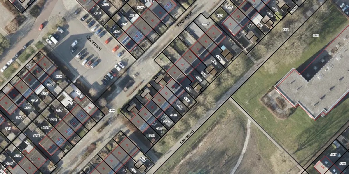 Het perceel waarop Rhônepad 49 staat heeft een oppervlakte van 158 m². Dit is een middelgroot perceel. De perceeloppervlakte wordt geregistreerd door het Kadaster. Gedetailleerde informatie over de maten van dit perceel kunt u vinden in het rapport Kadastrale kaart met maatvoering van Rhônepad 49.