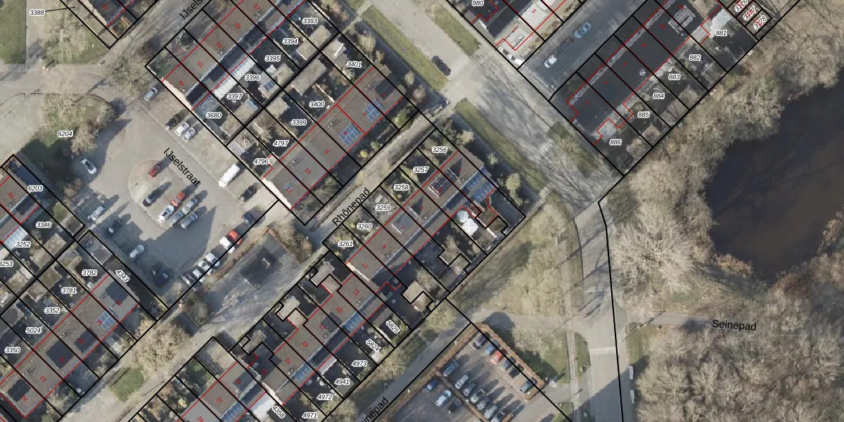 Gebruik de zoekbalk of klik op een perceel voor informatie over de adressen binnen dit perceel.