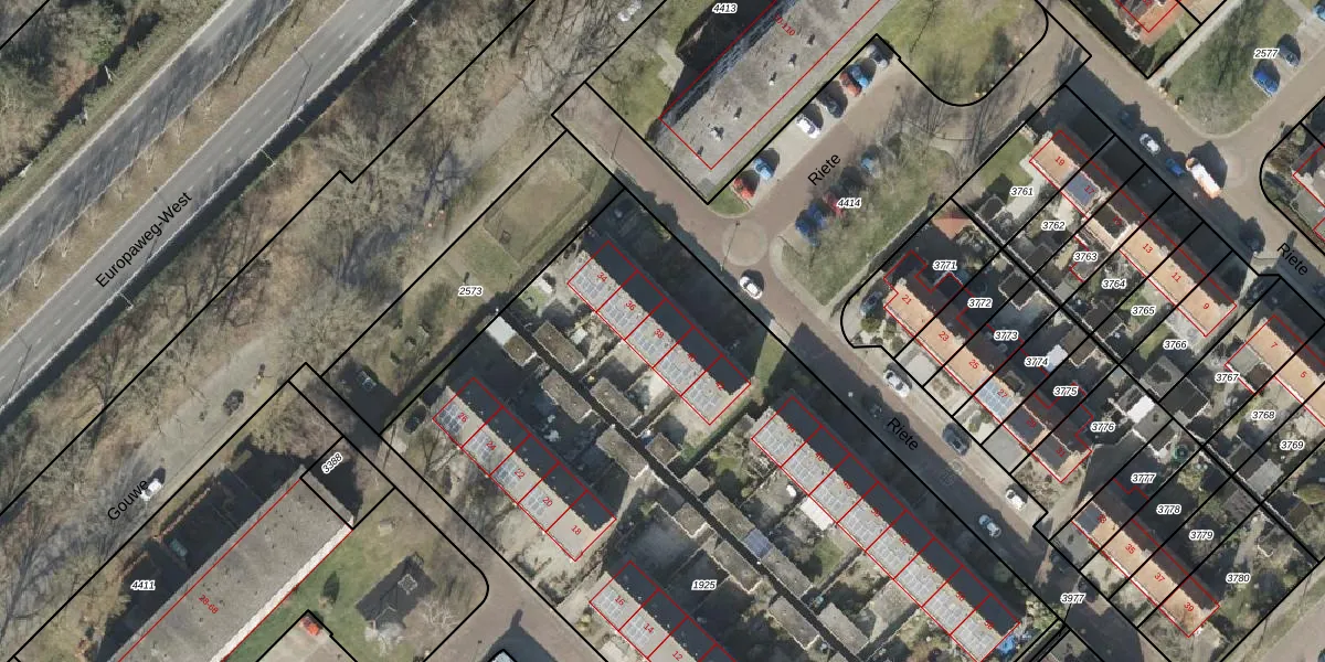 Het perceel waarop Riete 38 staat heeft een oppervlakte van 4818 m². Dit is een zeer groot perceel. De perceeloppervlakte wordt geregistreerd door het Kadaster. Gedetailleerde informatie over de maten van dit perceel kunt u vinden in het rapport Kadastrale kaart met maatvoering van Riete 38.