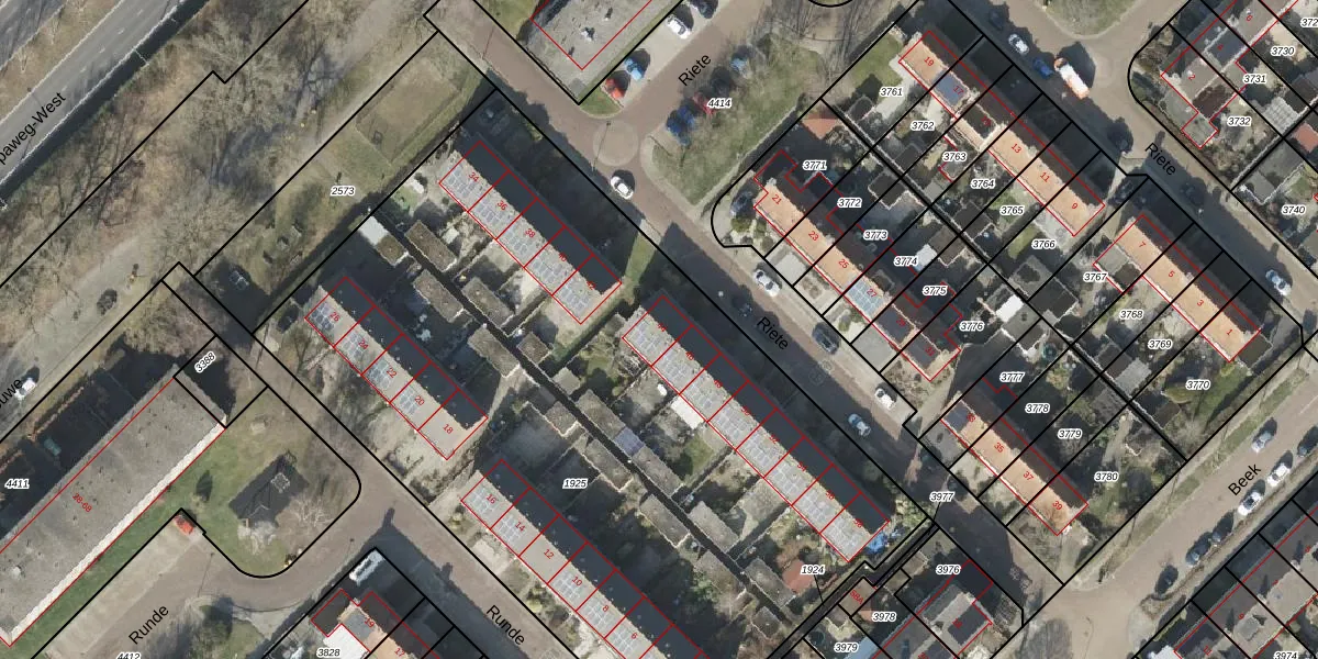 Het perceel waarop Riete 44 staat heeft een oppervlakte van 4818 m². Dit is een zeer groot perceel. De perceeloppervlakte wordt geregistreerd door het Kadaster. Gedetailleerde informatie over de maten van dit perceel kunt u vinden in het rapport Kadastrale kaart met maatvoering van Riete 44.