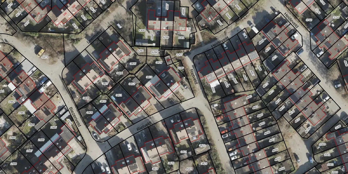 Gebruik de zoekbalk of klik op een perceel voor informatie over de adressen binnen dit perceel.