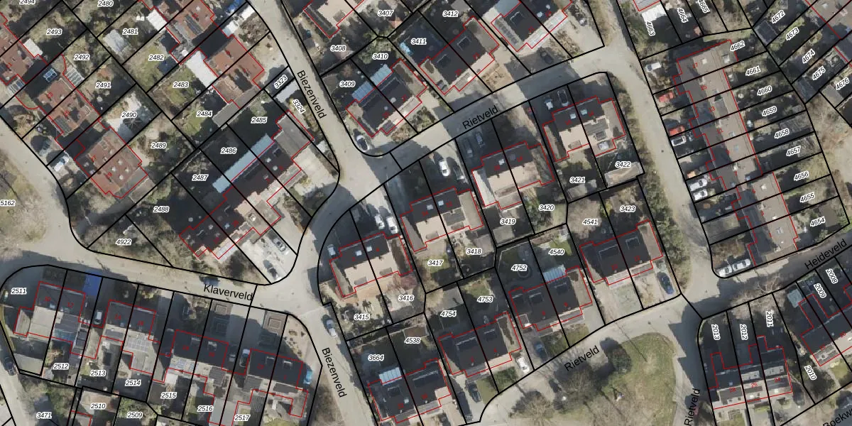 Gebruik de zoekbalk of klik op een perceel voor informatie over de adressen binnen dit perceel.