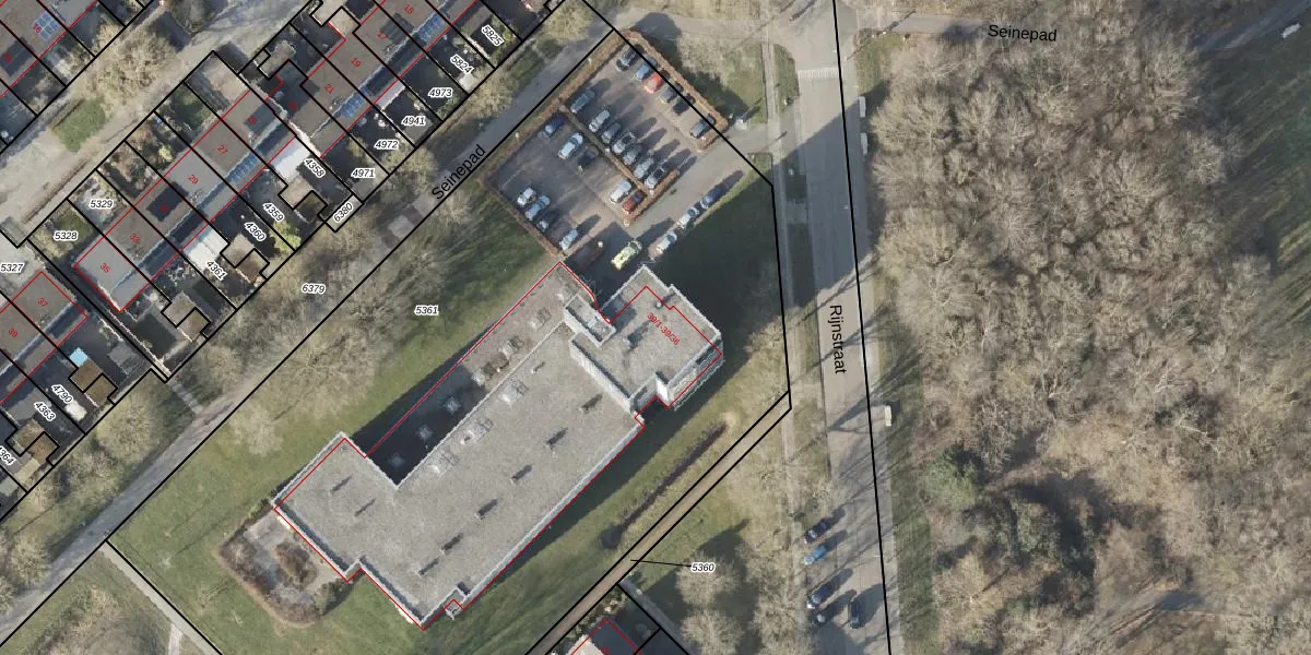 Het perceel waarop Rijnstraat 39-31 staat heeft een oppervlakte van 6118 m². Dit is een zeer groot perceel. De perceeloppervlakte wordt geregistreerd door het Kadaster. Gedetailleerde informatie over de maten van dit perceel kunt u vinden in het rapport Kadastrale kaart met maatvoering van Rijnstraat 39-31.