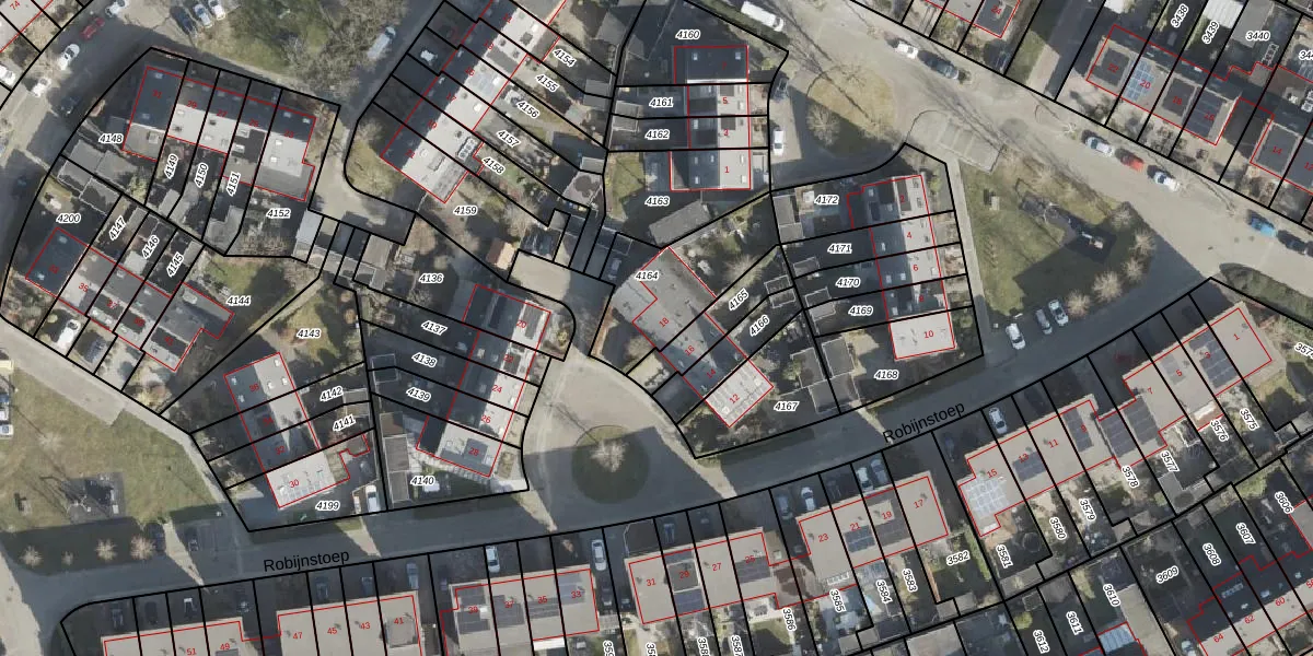 Het perceel waarop Robijnstoep 18 staat heeft een oppervlakte van 375 m². Dit is een groot perceel. De perceeloppervlakte wordt geregistreerd door het Kadaster. Gedetailleerde informatie over de maten van dit perceel kunt u vinden in het rapport Kadastrale kaart met maatvoering van Robijnstoep 18.