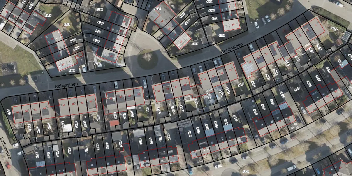 Gebruik de zoekbalk of klik op een perceel voor informatie over de adressen binnen dit perceel.