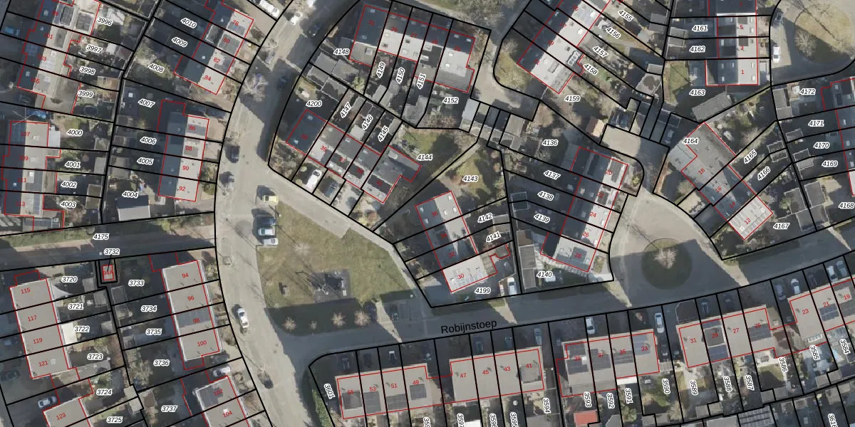 Het perceel waarop Robijnstoep 36 staat heeft een oppervlakte van 346 m². Dit is een groot perceel. De perceeloppervlakte wordt geregistreerd door het Kadaster. Gedetailleerde informatie over de maten van dit perceel kunt u vinden in het rapport Kadastrale kaart met maatvoering van Robijnstoep 36.