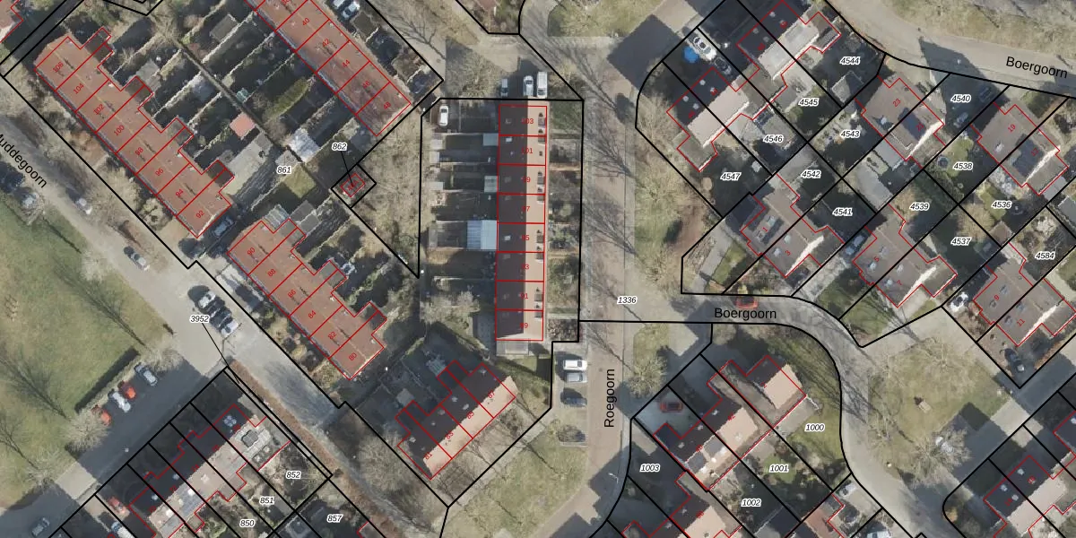 Het perceel waarop Roegoorn 93 staat heeft een oppervlakte van 5880 m². Dit is een zeer groot perceel. De perceeloppervlakte wordt geregistreerd door het Kadaster. Gedetailleerde informatie over de maten van dit perceel kunt u vinden in het rapport Kadastrale kaart met maatvoering van Roegoorn 93.