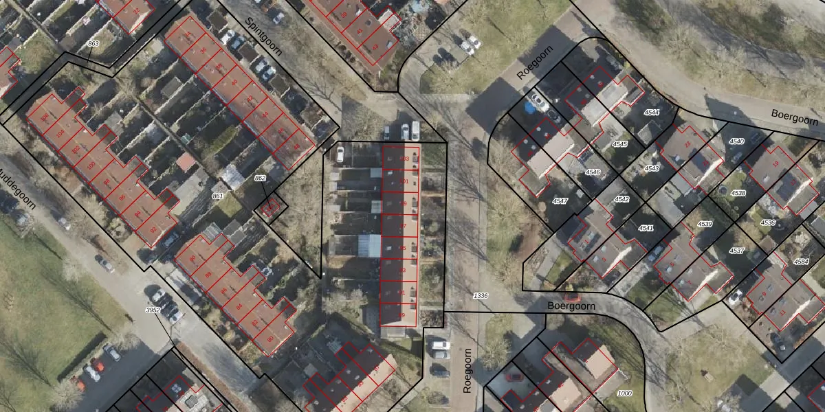 Het perceel waarop Roegoorn 99 staat heeft een oppervlakte van 5880 m². Dit is een zeer groot perceel. De perceeloppervlakte wordt geregistreerd door het Kadaster. Gedetailleerde informatie over de maten van dit perceel kunt u vinden in het rapport Kadastrale kaart met maatvoering van Roegoorn 99.