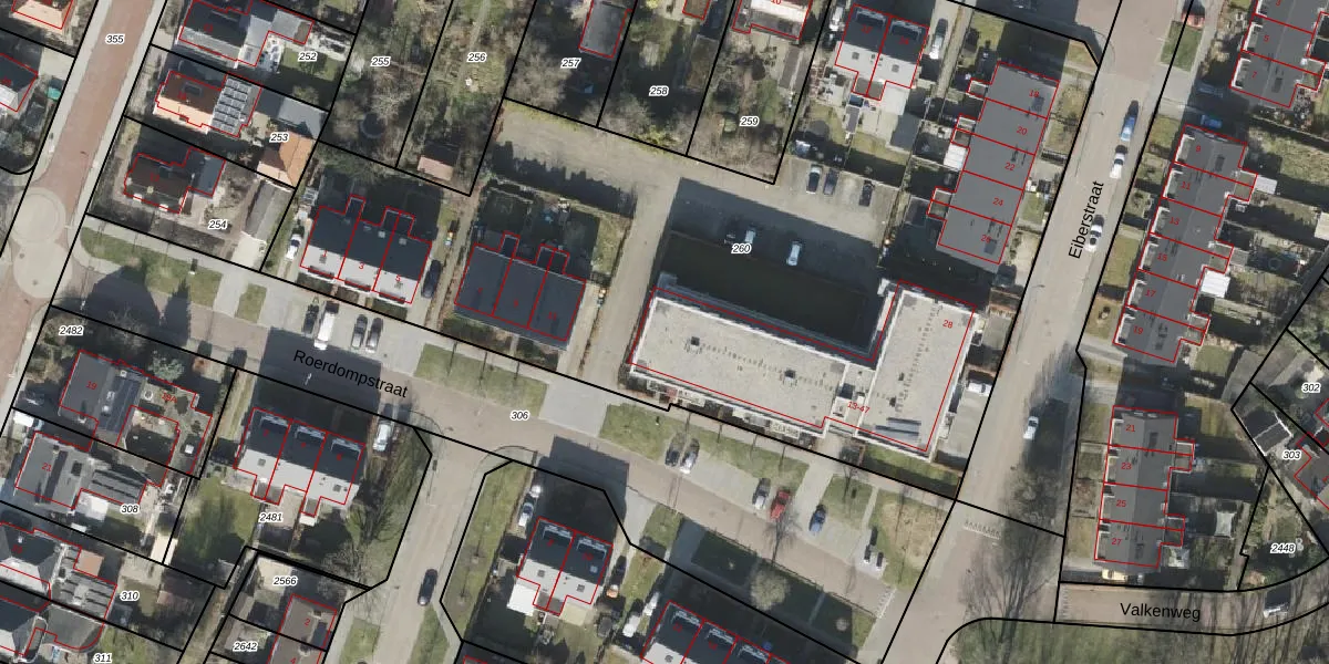 Roerdompstraat 33 is gelegen op kadastraal perceel ASN00V260. Deze kadastrale aanduiding is uniek en wordt gebruikt door het Kadaster om eigendomsrechten en andere zakelijke rechten vast te leggen. Het perceel maakt onderdeel uit van de kadastrale gemeente Assen.